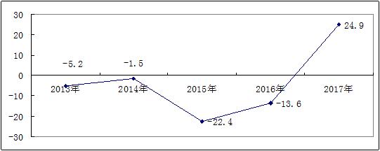 图表 15 2013—2017年零售上市公司净利润增长率中位数(%)