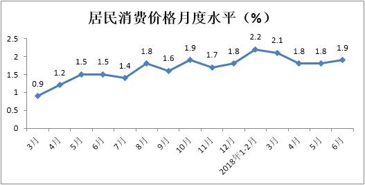上半年,居民消费价格同比上涨2%,涨幅较2017年同期提高0.6个百分点。其中食品价格同比上涨1.2%,涨幅较2017年同期加快3.3个百分点;非食品价格同比上涨2.2%,涨幅较同期放缓0.1个百分点。消费品价格同比上涨1.5%,涨幅较同期提高0.9个百分点;服务价格同比上涨2.7%,涨幅较上年同期放缓0.2个百分点。