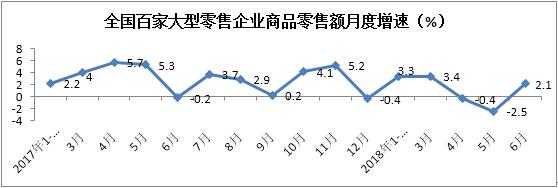 根据乐鱼电竞统计,上半年全国百家重点大型零售企业零售额同比增长1.7%,增速较去年同期放缓1.4个百分点。其中,4、5月份均为负增长,6月全国百家重点大型零售企业零售额同比增长2.1%,增速高于上年同期2.3个百分点。