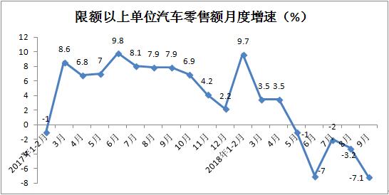 前三季度,限额以上单位汽车类零售额同比增长0.2%,增速较1-8月份放缓4.4个百分点。拉动社会消费品零售总额增长0.02个百分点。其中,9月份同比下降7.1%,增速连续5个月不及上年同期。
