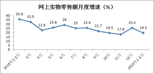 1-2月份网上实物商品零售额实现10901亿元,同比增长19.5%,对社会消费品零售总额增长的贡献率为35.5%,拉动社会消费品零售总额增长2.9个百分点,占社会消费品零售总额的比重达到16.5%。