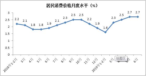 上半年居民消费价格累计上涨2.2%,涨幅与1-5月份持平。其中食品价格同比上涨4.7%,涨幅较上年同期扩大3.5个百分点;非食品价格同比上涨1.6%,涨幅较同期回落0.6个百分点。消费品价格同比上涨2.4%,涨幅较同期扩大0.9个百分点;服务价格同比上涨2%,涨幅较上年同期回落0.7个百分点。