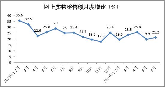 2、网上商品零售增长较快,6月份增速环比提升1.3个百分点