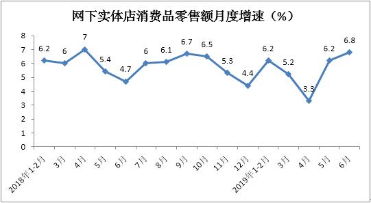 据测算,上半年实体店消费品零售额增长5.6%,增速较1-5月份提升0.2个百分点。其中,6月份同比增长6.8%,增速环比加快0.6个百分点。