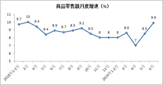 上半年商品零售额实现173930亿元,累计增长8.3%,增速较1-5月份加快0.3个百分点。其中,6月份同比增长9.9%,增速环比提升1.4个百分点,是近15个月以来最高增速。