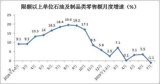 1-7月份限额以上单位石油及制品类零售额实现11288亿元,累计增长2.5%,增速较1-6月份放缓0.6个百分点。其中,7月份石油及制品零售额同比下降1.1%,增速较上月回落4.6个百分点。