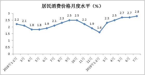 7月份居民消费价格同比上涨2.8%,涨幅较上月提高0.1个百分点,创今年以来新高。