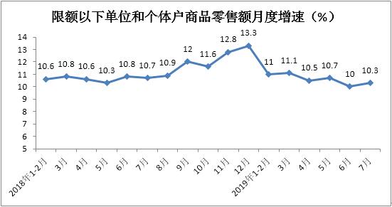 扣除限额以上单位汽车商品零售额后,1-7月份社会消费品零售总额增长9.2%,增速与1-6月份基本持平。其中,7月份扣除汽车后,社会消费品零售总额增长8.8%,增速较上月放缓0.2个百分点。