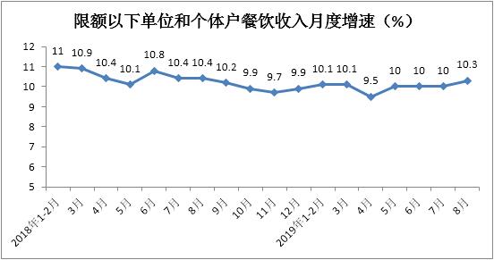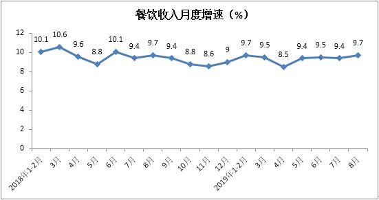 1-8月份餐饮收入实现28795亿元,累计增长9.4%,增速与1-7月份持平。其中,8月份同比增长9.7%,增速较上月加快0.3个百分点。
