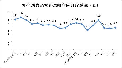 扣除价格因素后,1-9月份我国社会消费品零售总额实际累计增长6.4%,增速与1-8月份持平。其中,9月份实际同比增长5.8%,增速较上月加快0.2个百分点。