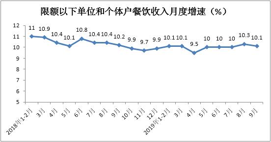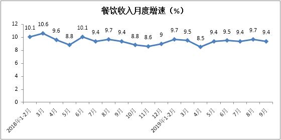 1-9月份餐饮收入实现32565亿元,累计增长9.4%,增速与1-8月份持平。其中,9月份同比增长9.4%,增速较上月放缓0.3个百分点。