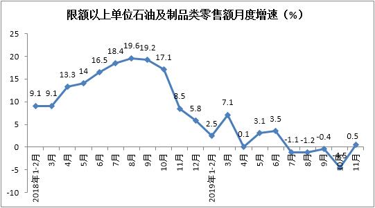 1-11月份限额以上单位石油及制品类零售额实现18251亿元,累计增长1%,增速与1-10月份持平。其中,11月份石油及制品零售额同比增长0.5%,自7月份以来首次实现同比正增长。