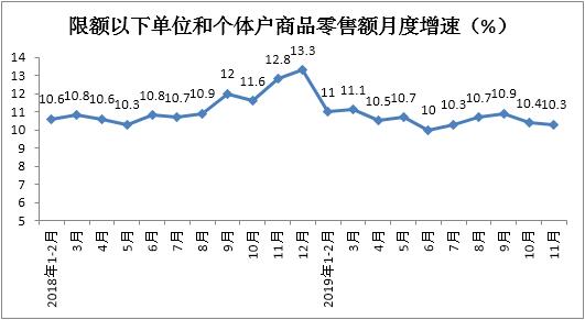 扣除汽车商品零售额后,1-11月份社会消费品零售总额增长9%,增速与1-10月份持平。其中,11月份扣除汽车后,社会消费品零售总额增长9.1%,增速较上月加快0.8个百分点。