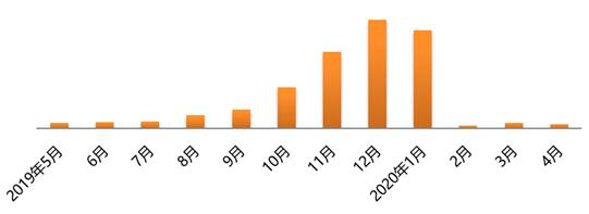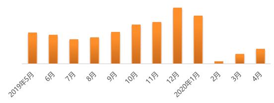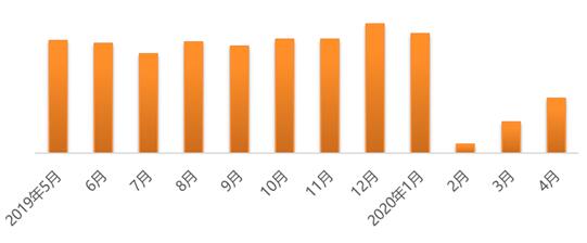 图1:2019年5月-2020年4月30家大型百货企业服装零售量