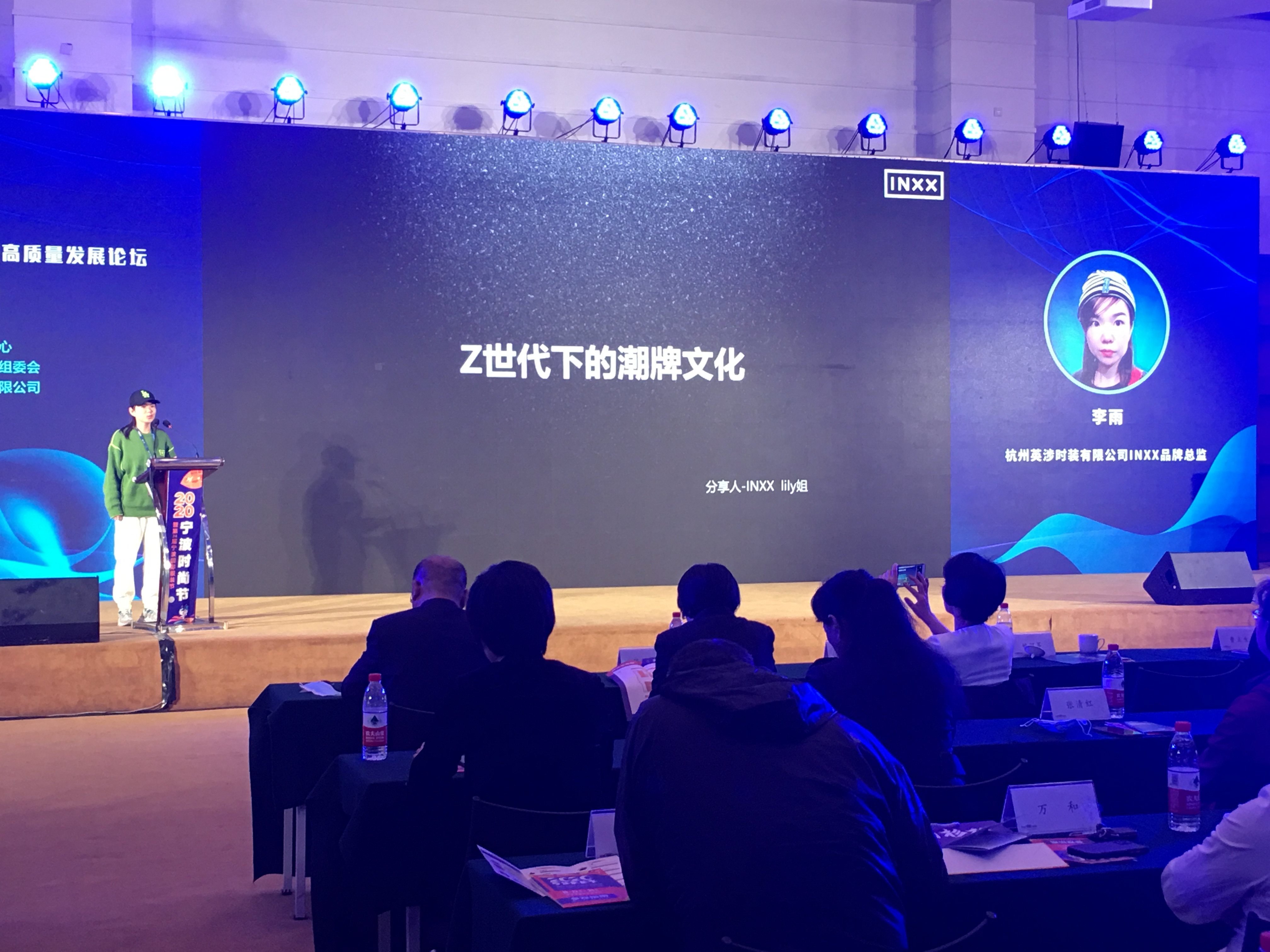 杭州英涉时装有限公司INXX品牌总监李雨分享了Z世代下的潮流文化以及潮流文化带给我们经济增速和潮流品牌的增长情况。