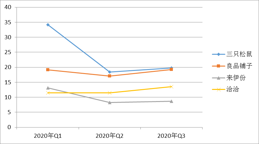 从行业内重点A股上市企业来看,前三季度,三只松鼠营收同比增长7.7%,来伊份营收同比增长2.9%,洽洽营收同比增长13.4%。其中,良品铺子身处疫情重灾区,在线下门店销售受到严重冲击的情况下整体营收实现同比正增长1.3%,除武汉所在的华中地区外其余地区均实现同比较快增长,其中华南地区同比增长超过20%。