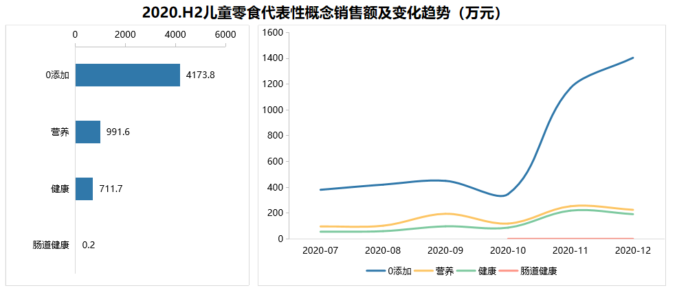 图表 5? 2020年下半年监测重点线上平台儿童零食重点概念销售情况