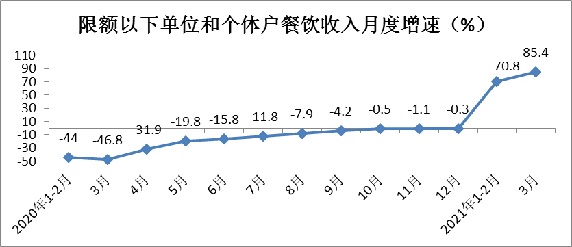 一季度餐饮收入10596亿元,同比增长75.8%,据测算,较2019年同期下降2%,两年平均下降1%。其中,限额以上单位餐饮收入2285亿元,同比增长77.7%。