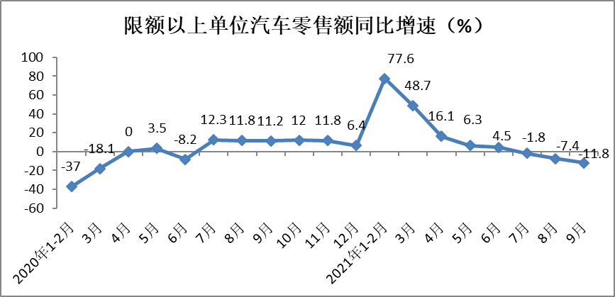 前三季度,限额以上单位汽车类零售额实现32066亿元,同比增长15.5%,增速较1-8月份放缓4.6个百分点。9月份,限额以上单位汽车类零售额同比下降11.8%,降幅较8月份扩大4.4个百分点。