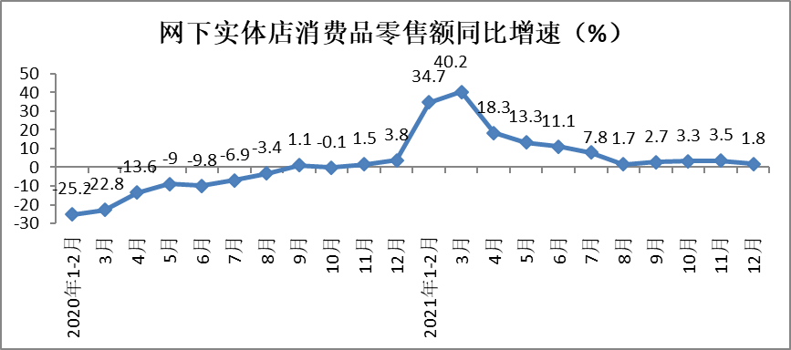 3、2021年实体店零售额实现较快增长