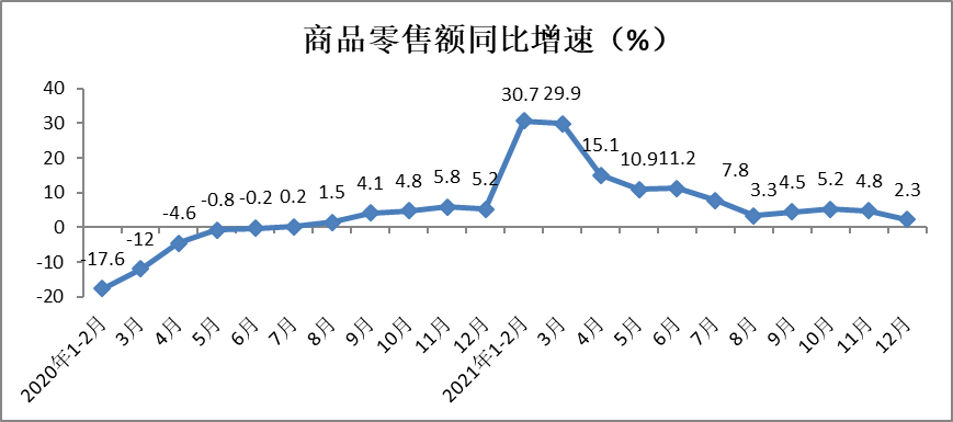 1、2021年社会消费品零售总额同比增长12.5%