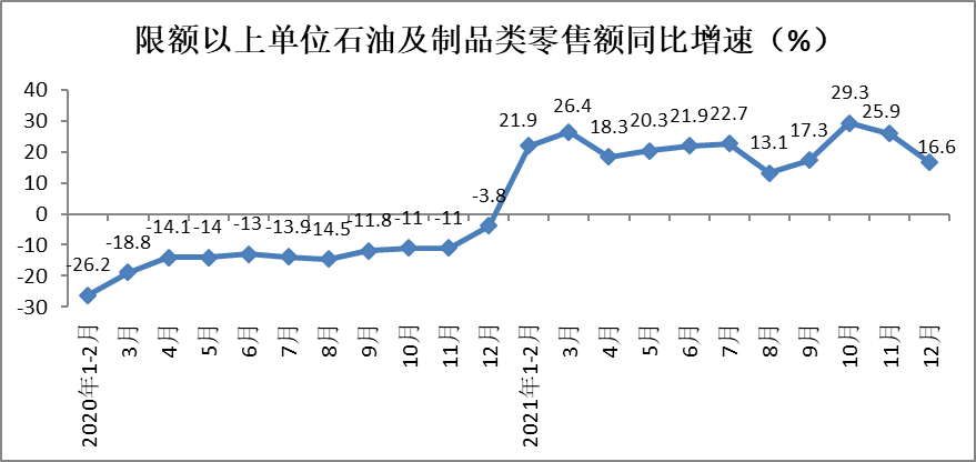 8、2021年限额以上单位石油及制品零售额增速高达21.2%