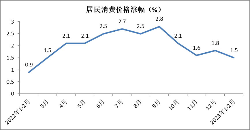 1-2月份全国居民消费价格同比上涨1.5%,涨幅虽较去年12月份放缓0.3个百分点,但高于去年同期0.6个百分点,反映出消费有所回暖,且物价总体平稳的良好态势。其中,食品消费价格受节日因素影响同比上涨4.4%,涨幅相对较大。