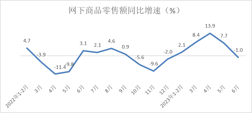 经测算,上半年,网下商品零售额实现166965亿元,同比增长5.2%,增速较一季度加快1.2个百分点。6月份网下商品零售额同比下降1%,增速较5月份回落8.7个百分点。