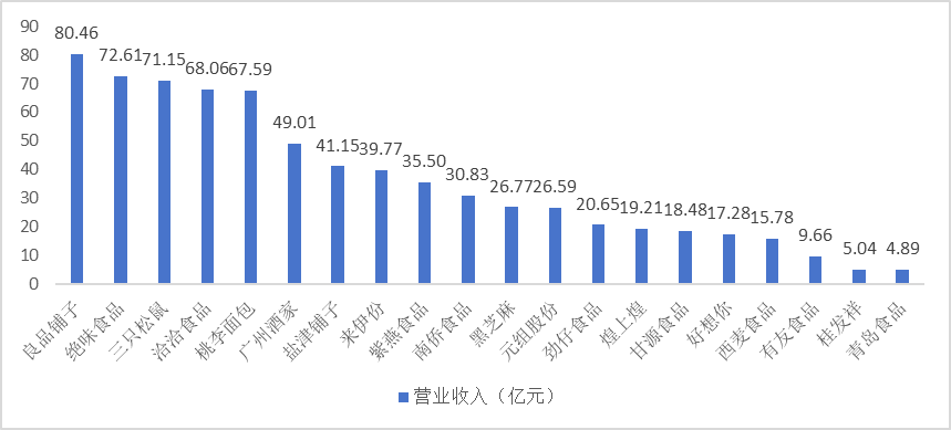 图表4? 2023年休闲食品类相关上市公司营业收入(亿元)
