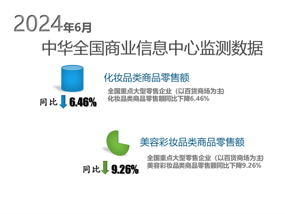 根据乐鱼电竞的监测数据,2024年6月份全国重点大型零售企业(以百货商场为主)化妆品类商品零售额同比下降6.46%,其中美容彩妆品类商品零售额同比下降9.26%。