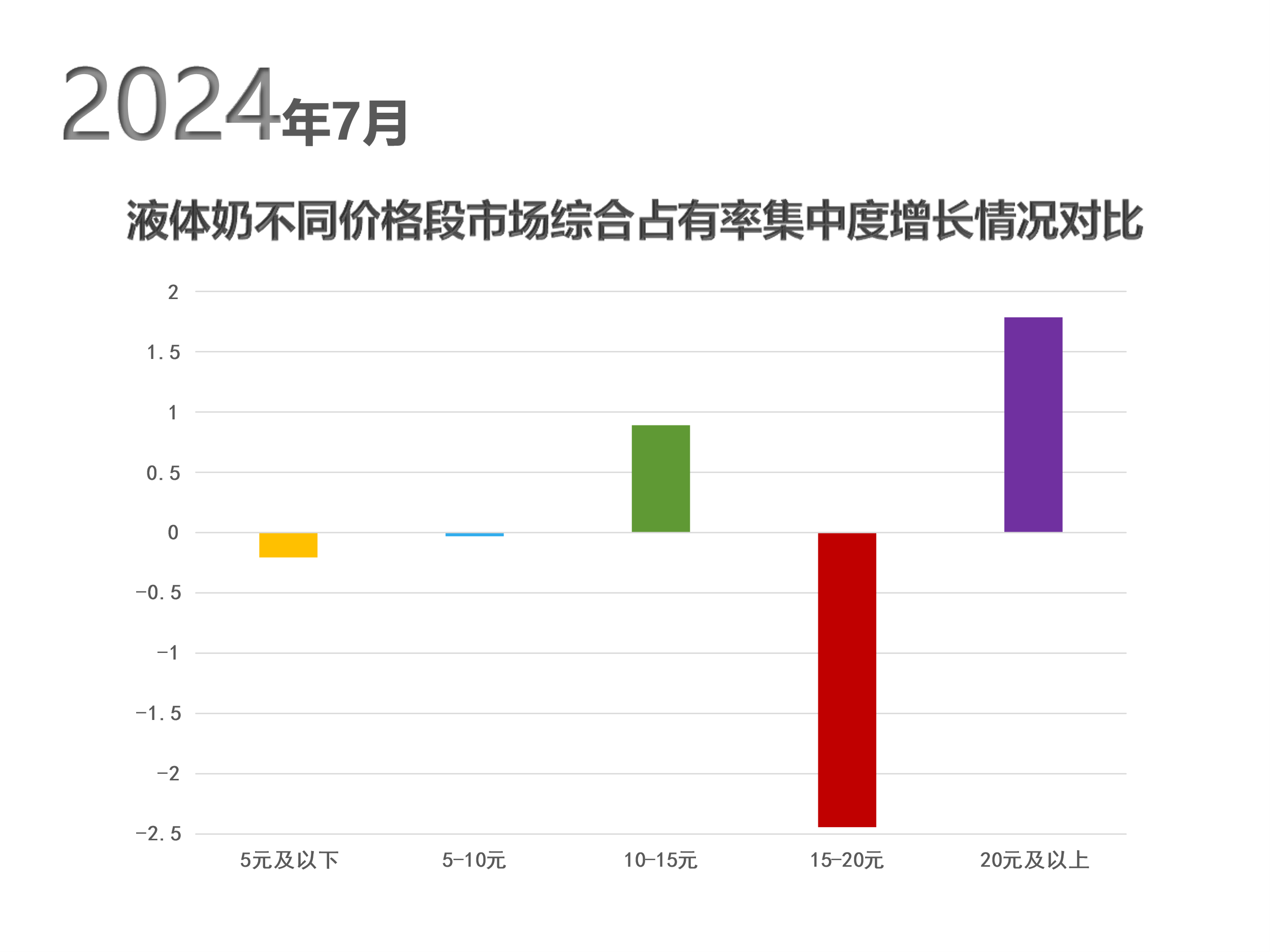 从2024年7月份品牌数据来看,在监测范围内液体奶零售平均价格为7元,与去年同期相比略有下降。