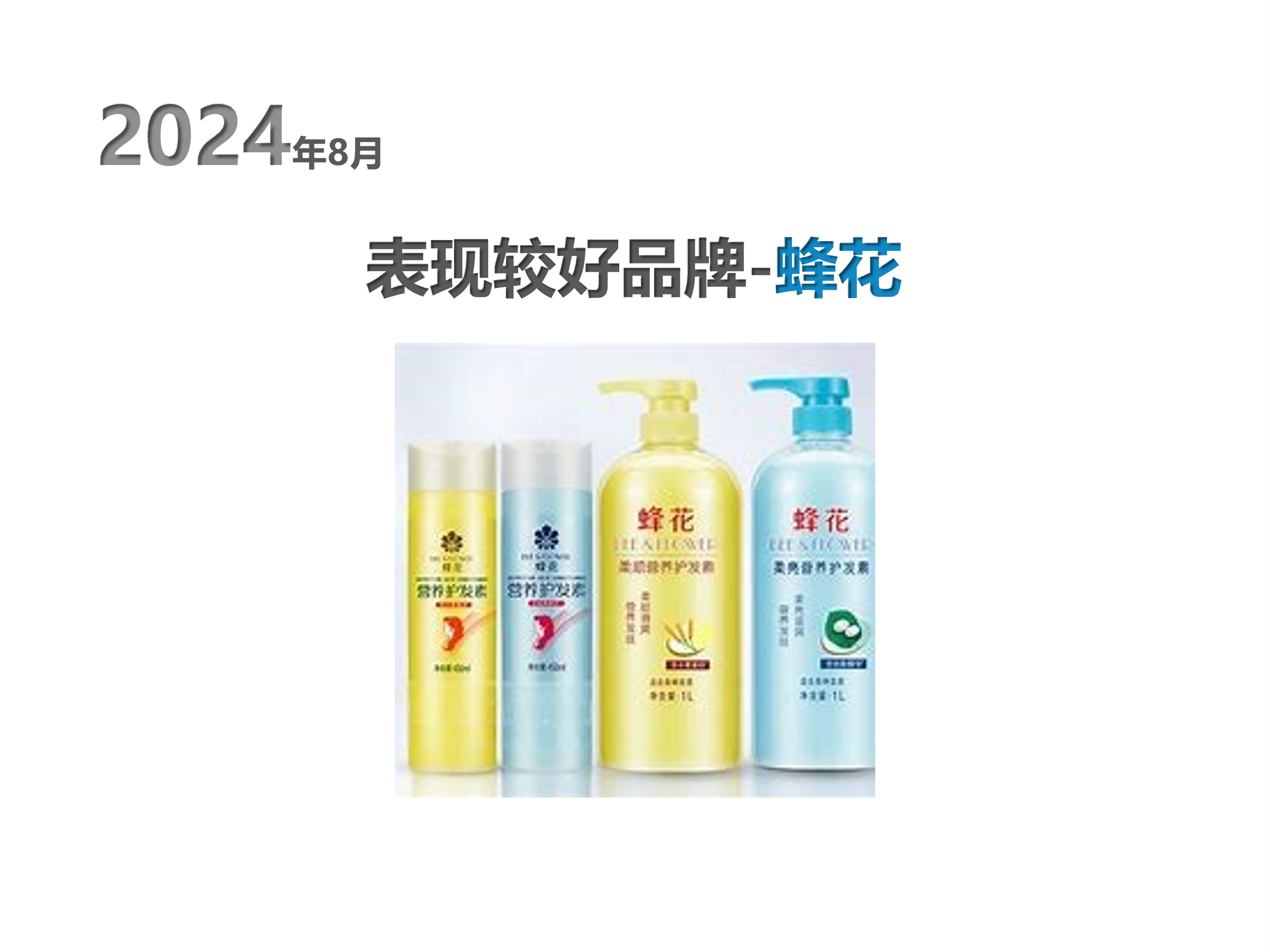 根据乐鱼电竞的监测数据,2024年8月份全国重点大型零售企业(以百货商场为主)洗发护发品品牌前十名包括海飞丝、清扬、飘柔、潘婷、欧莱雅、沙宣、阿道夫、力士、蜂花、舒蕾,前十位品牌市场综合占有率合计为52.82%,较去年同期上升1.50个百分点,与上月相比下降1.06个百分点。前十品牌中,蜂花品牌本月表现较好,市场综合占有率与去年同期相比提高了0.80个百分点。