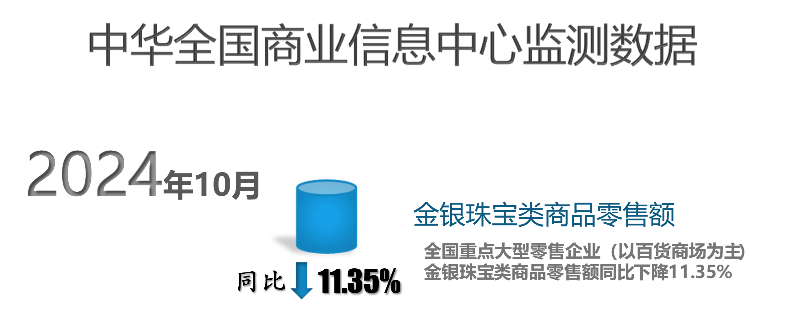 根据乐鱼电竞的数据,2024年10月份全国重点大型零售企业(以百货商场为主)金银珠宝类商品零售额同比下降11.35%。