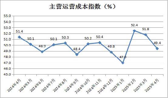 主营业务运营成本反向指数为49.4%,较上月下降2.4个百分点,表明商品经营类企业预期运营成本有所上升。