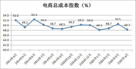 电商总成本反向指数为48.2%,较上月下降2.3个百分点,表明电商经营类企业成本投入有所增加。