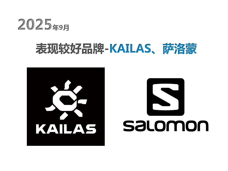 根据乐鱼电竞的监测数据,2025年9月户外服装市场前十品牌中,KAILAS和萨洛蒙表现较为突出,市场综合占有率较上年同期分别提高2.40和2.23个百分点。