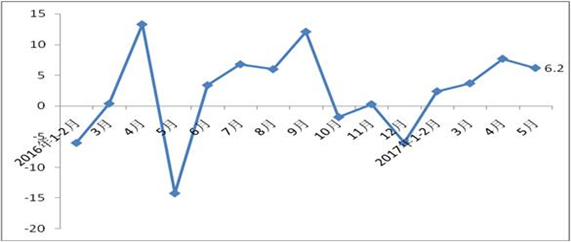 2017年5月份全国百家重点大型零售企业家电零售额同比增长6.2%