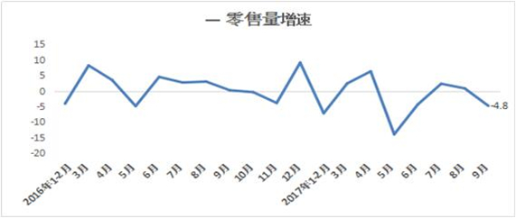 前三季度,全国百家重点大型零售企业各类服装零售量累计下降0.1%,增速相比上年同期放缓0.7个百分点。其中9月份全国百家重点大型零售企业各类服装零售额同比下降4.8%,低于上年同月5.0个百分点。
